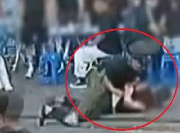 그러던 와중 남성이 잠깐 차도에 주저앉았을 때, 순간 누군가 쏜살같이 달려와 남성을 뒤에서 넘어뜨리고 두 팔을 젖혀 제압했다.