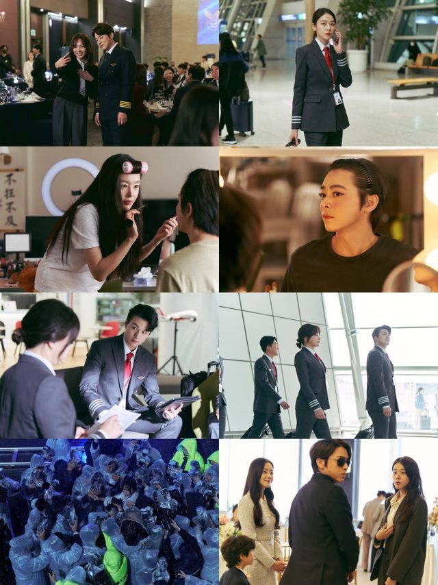 이번에 공개된 ‘파일럿’의 보도스틸은 다채로운 캐릭터들의 모습과 상상 이상의 파격 변신, 그리고 예측 불가한 사건들의 순간을 포착해 스토리에 대한 기대감을 높인다. 먼저 모두가 알아볼 정도로 잘 나가던 스타 파일럿 한정우(조정석 분)가 친동생이자 ASMR 뷰티 유튜버인 한정미(한선화 분)의 도움으로 파격 변신을 시도하는 모습은 과연 이들이 어떤 이유로 이런 도전을 하게 되었는지 궁금증을 유발한다. 또한 한정미로 변신한 한정우의 직장 동료인 윤슬기(이주명 분)의 모습과 함께 한정우의 후배이지만 한정미에게는 선배인 파일럿 서현석(신승호 분)의 모습도 담겨 있어 이들이 영화 속에서 보여줄 신선한 케미스트리에 대한 기대감도 고조시킨다.