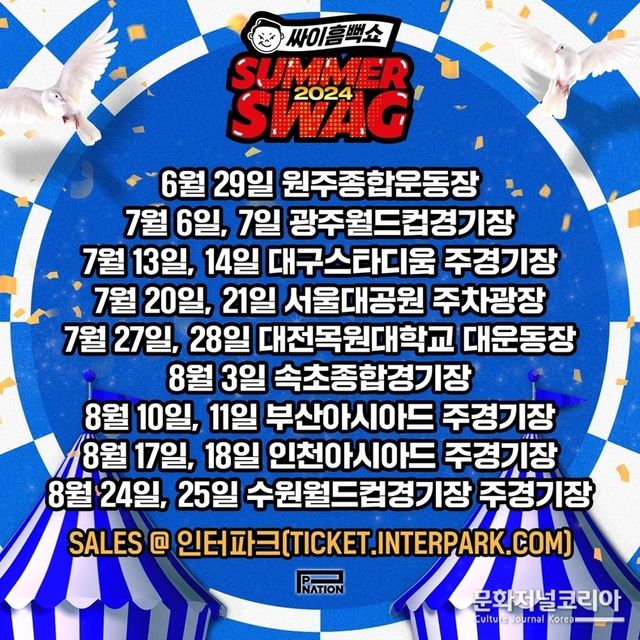 '싸이'는 오는 29일 강원도 원주에서부터 ‘싸이흠뻑쇼 SUMMERSWAG 2024(썸머스웨그 2024)’(이하 ‘싸이흠뻑쇼 2024’)를 개최, 총 9개 도시에서 전국 각지 관객과 함께한다.