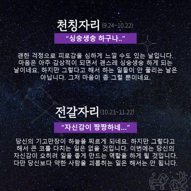 Δ 천칭자리 : 싱숭생숭 하구나..