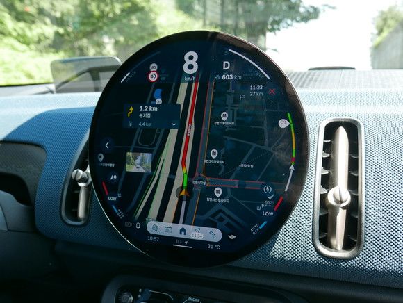 뉴 MINI 컨트리맨의 내부 공간의 가장 큰 특징은 대시보드 중앙에 자리 잡은 원형 OLED 디스플레이다. = 노병우 기자