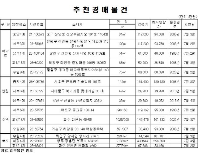 서울 영등포구 당산동4가 당산현대 아파트 508동 102호가 경매 나왔다. 당서초등학교 남서측 인근에 소재한 물건으로 13개동 976세대의 대단위 아파트 단지로 2000년 3월에 입주했다. 25층 건물 중 1층으로 남동향이며 59.4㎡(24평형)의 3베이 구조로 방이 3개다. 당산로, 영신로 등을 통해 차량 진 출입이 수월하며 지하철 2호선 당산역이 걸어서 10분 거리에 있다. 당서초등, 당산서중, 선유고교 등이 단지 인근에 있어 교육환경은 양호하다. 감정가 9억3000만원에서 한 차례 떨어져 7억4400만원에 매각이 진행된다. 등기부 등본상 근저당 4건, 가압류 5건, 질권 6건, 압류 1건 등은 매각 후 잔금 납부시 소멸된다. 소유자가 거주하고 있어 매각 시 인도부담이 적다. 시세는 9억3000만원에서 10억3000만원에 거래되고 있으며 전세가는 5억8000만원에서 6억3000만원 선이다. 매각일자는 7월2일 서울남부지방법원 경매 1계다. 사건번호 23 - 5066