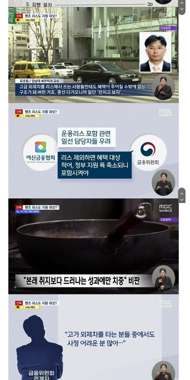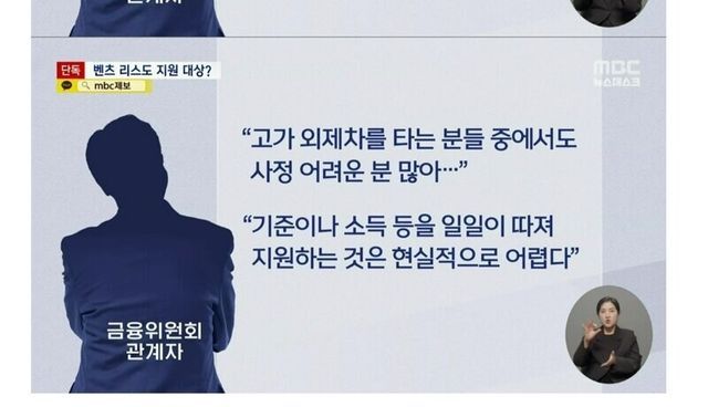 이에 금융위원회 측 대답 “고가 외제차를 타는 분들 중에도 사정이 어려운 분들이 많다”