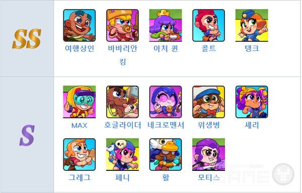 다양한 티어표 중에서 알테마의 티어표를 살펴보자. SS 캐릭터는 거래상과 콜트, 바바리안킹, 아처퀸, 탱크다. 바바리안 킹과 아처퀸은 근거리와 원거리의 공속을 증가시켜주는 캐릭터여서 당연히 SS 티어표를 받을 만 하다.