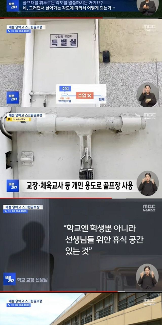 그 공간에 학생들 모르게 스크린 골프장을 만들고 선생들이 돌아가며 이용함