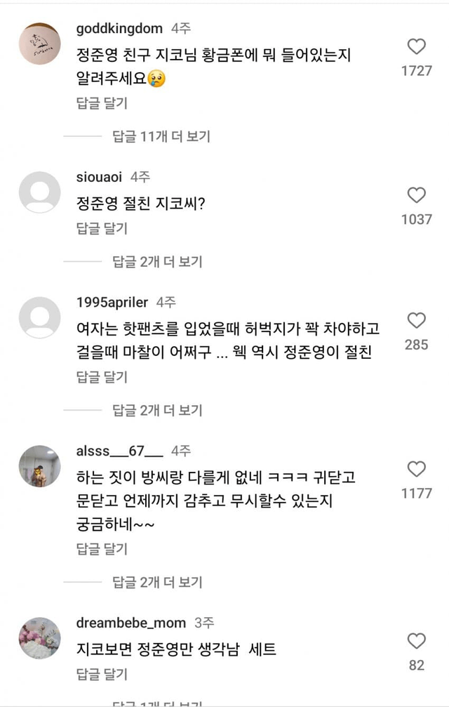 BBC 버닝썬 다큐 게시되고부터 지코 인스타 피드 베댓이 죄다 황금폰, 정준영 이런거임