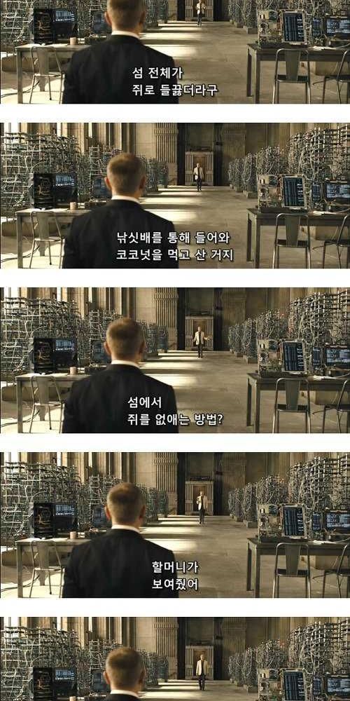영화 007 스카이폴에서 등장하는 인상 깊은 대사 중 하나는 섬에서 쥐를 잡는 법입니다. 이 대사는 라울 실바가 제임스 본드에게 자신의 과거와 현재 목표에 대해 설명하는 장면에서 등장합니다. 실바는 쥐를 잡기 위해 섬에 남긴 다른 쥐의 이야기로 자신이 어떤 방법으로 적들을 처리해왔는지를 비유적으로 표현합니다.