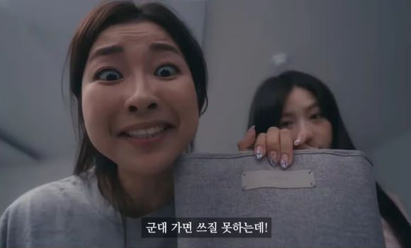그러나 이내 "온열 효과가 있으면 뭐 하나. 에어펌프가 들어 있으면 뭐 하나. 군대 가면 쓰질 못하는데"라고 말하며 재입대하는 남성을 향해 조롱하는 듯한 표정을 지으며 웃는다.
