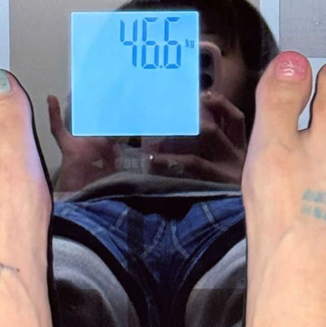 현아는 24일 본인의 인스타그램을 통해 체중계에 올라간 사진을 게시했다.