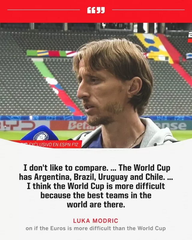 공교롭게도 모드리치는 최근 2번의 월드컵에서 모두 4강에 진출하는 등 위업을 달성한 바 있다. 대회 전 선수들 사이에서 논란이 된 ‘월드컵과 유로 중 어느 대회가 어려운지’라는 질문에선 “아르헨티나·브라질·우루과이 등이 뛰는 월드컵이 더 어렵다. 물론 모두 각자의 의견이 있을 것이다”라고 말한 바 있다. 그랬던 모드리치는 앞선 4번의 유로 대회에서 8강·조별리그·16강·16강 탈락이라는 성적표를 받았다. 과연 모드리치의 라스트 댄스가 이어질지가 관심사다.