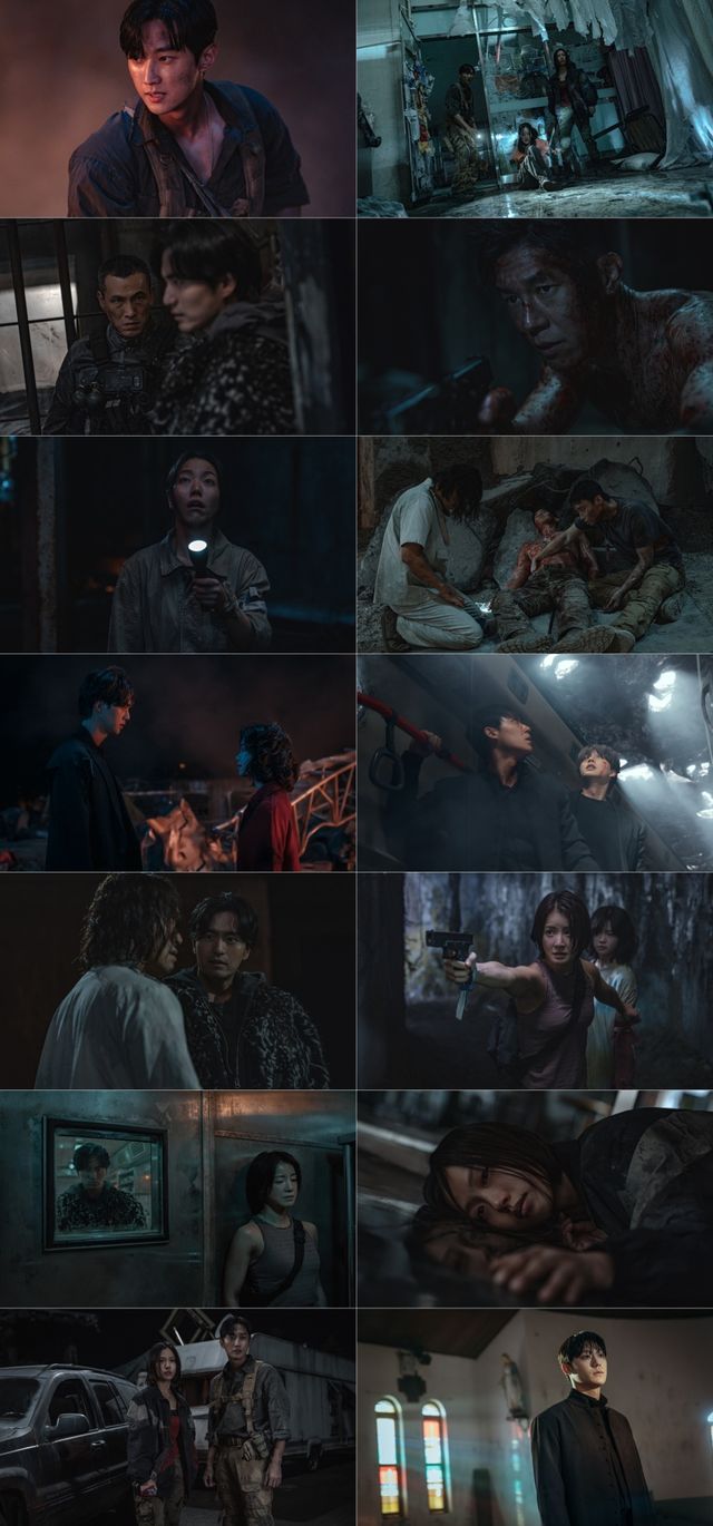 ‘은유’(고민시)는 절망적인 상황 속에서도 끝까지 주변 사람들을 포기하지 않고 함께 살아 남으려 한다. 특히 ‘은유’는 지난 시즌 그토록 찾아 헤매던 오빠 ‘은혁’(이도현)과 기적처럼 재회하며 새로운 서사를 보여줄 전망이다. 서로를 마주보고 있는 ‘은유’와 ‘은혁’의 스틸은 이전과는 미묘하게 달라진 두 사람 사이의 공기를 예상케 하며 다시 돌아온 ‘은혁’에 대한 궁금증을 고조시킨다. 모두가 죽었다고 생각했지만 어딘가 달라진 모습으로 살아 돌아온 ‘은혁’의 모습은 신인류의 탄생이 괴물화 사태에 어떤 결말을 가져올지 호기심을 자극한다. 화염 속에서 전투 태세를 갖추고 있는 ‘찬영’(진영)의 스틸은 살아남은 이들을 구하기 위해서라면 자신의 목숨조차 아끼지 않는 그의 용감한 면모를 짐작케 하며, 모든 것이 변한 세상 속에서도 변치 않는 정의로움으로 활약을 이어갈 그의 모습에 대한 궁금증을 높인다.