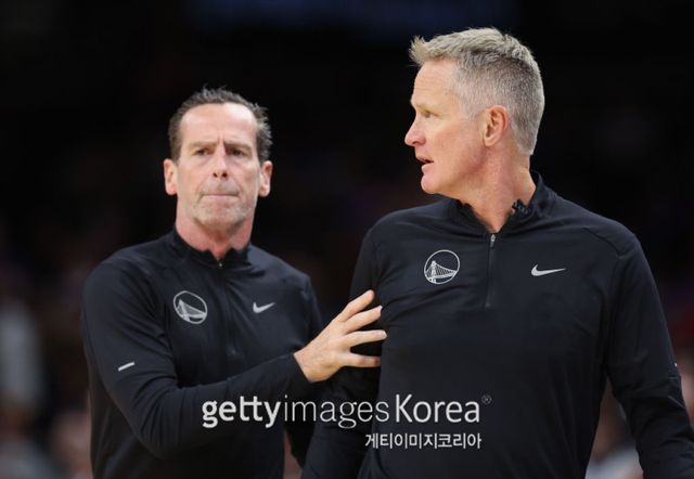 케니 앳킨슨(왼쪽) 골든스테이트 코치가 클리블랜드의 지휘봉을 잡게 될 전망이다. 사진은 케니 앳킨슨 전 코치와 스티브 커 골든스테이트 감독의 모습. 사진=게티이미지