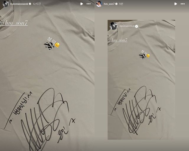 손흥민은 이 티셔츠에 자신의 사인을 하며 '변우석님!^^'이라고 적었다. 이에 평소 토트넘 홋스퍼 팬으로 알려진 변우석이 자신을 성덕이라고 표현한 것.
