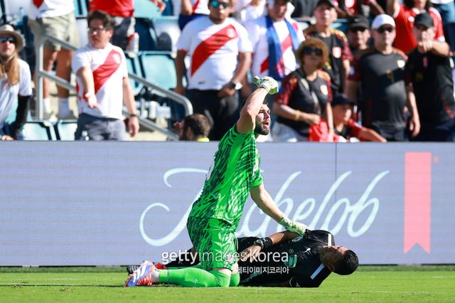 지난 25일(한국시간) 미국 캔자스 시티의 칠드런스 머시 파크에서 열린 캐나다와 페루의 2024 코파 아메리카 A조 2차전 경기. 하프타임 직전 사이드라인 근처에서 부심 움베르토 판조이가 쓰러져 경기가 잠시 중단됐다.