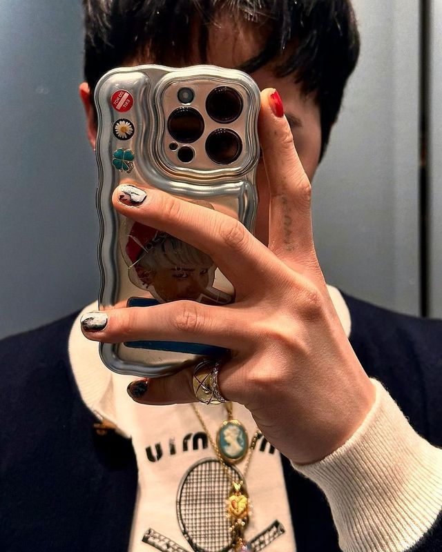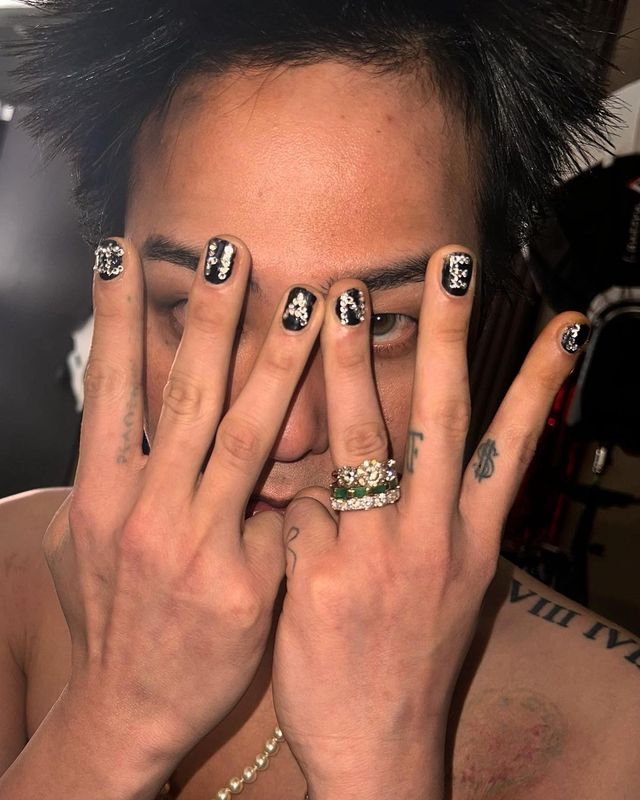 남자 네일의 새로운 가능성을 연 장본인이라 할 수 있죠. 핵심은 투박함입니다. 네일숍에서 갓 나온 듯 깔끔한 라인이 아닌, 거친 일본 록 밴드의 손톱에 칠해져 있을 법한 반항미가 포인트죠. 그는 다양한 컬러를 믹스하는가 하면, 큐빅이나 패턴으로 한층 화려한 네일을 완성합니다. 샤넬의 CC 로고, 나이키의 스우시, 피스마이너스원의 데이지 등 브랜드 로고를 활용하는 센스도 빼놓을 수 없고요.