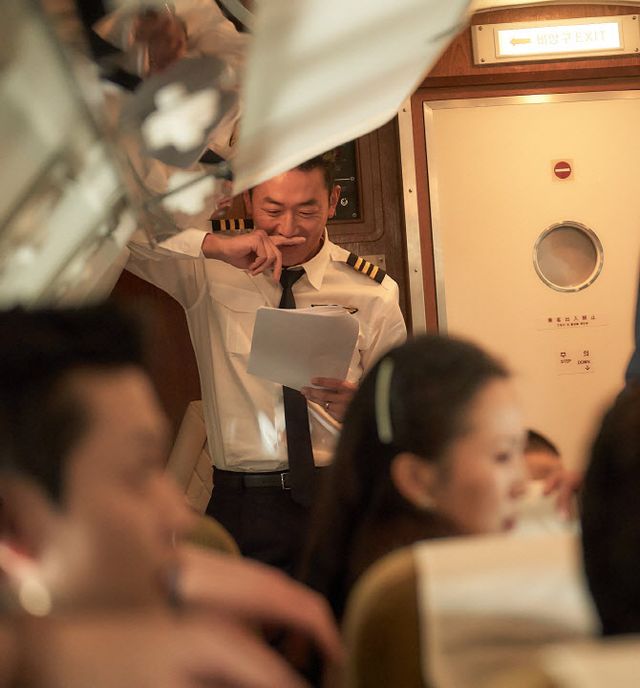 1971년 대한민국 상공, 여객기가 공중 납치되면서 벌어지는 극한의 상황을 담은 영화 ‘하이재킹’이 뜨거웠던 현장 분위기를 느낄 수 있는 비하인드 스틸 2탄을 공개했다. 먼저, 여객기의 부기장 태인 역을 맡은 하정우와 기장 규식 역을 맡은 성동일의 관객들에겐 익숙한 유쾌한 모습 뒤, 각자가 맡은 역할에 빠져들어 진지하게 촬영에 임하는 모습이 눈길을 끈다. 여진구 역시 그간의 따뜻한 오빠미에서 벗어나 눈동자부터 180도 달라진 파격적인 모습이 담겨 있다. 스틸만으로도 그가 각고의 노력 끝에 생애 첫 악역을 얼마나 생동감 있게 그려냈을 지 엿볼 수 있다. 여기에 여객기의 유일한 승무원으로 승객들의 안전을 책임졌던 옥순 역의 채수빈은 사소한 것 하나까지도 놓치지 않기 위해 모니터에 열중하고 있어 그의 남다른 열정을 엿보게 한다. 촬영에 들어가면 연기에 완벽하게 집중하지만, 컷이 난 후에는 비좁은 조종실에서도 웃음을 잃지 않는 배우들의 모습은 그들만이 전할 수 있는 유쾌한 현장의 에너지를 느끼게 하며 특급 케미를 자랑하고 있다.