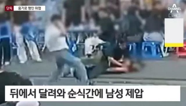 지난 16일 저녁 서울 종로 포장마차 거리에서 흉기를 든 남성이 시민을 위협하며 난동을 부렸다. / 채널A '뉴스A' 갈무리