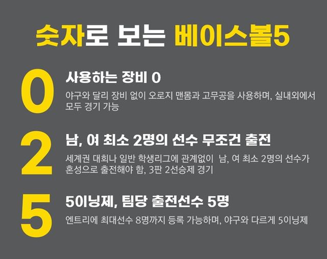 종목이 생소할 독자들을 위해 베이스볼5는 어떤 스포츠인지 아래 소개하고자 한다.