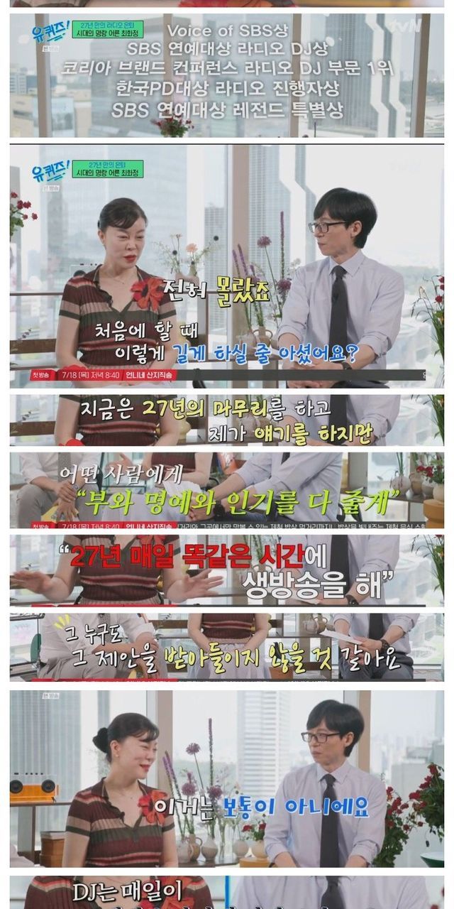 최화정은 27년이라는 긴 시간 동안 라디오 방송을 진행했습니다. 이는 그녀의 프로페셔널함과 청취자들과의 깊은 유대감을 보여주는 놀라운 기록입니다. 오랜 시간 동안 꾸준히 사랑받으며 라디오 프로그램을 운영해온 것은 아주 인상적인 일입니다.