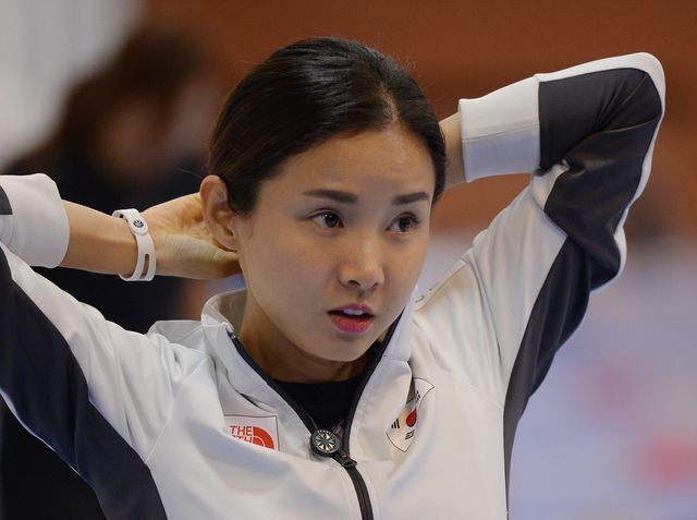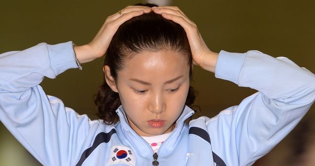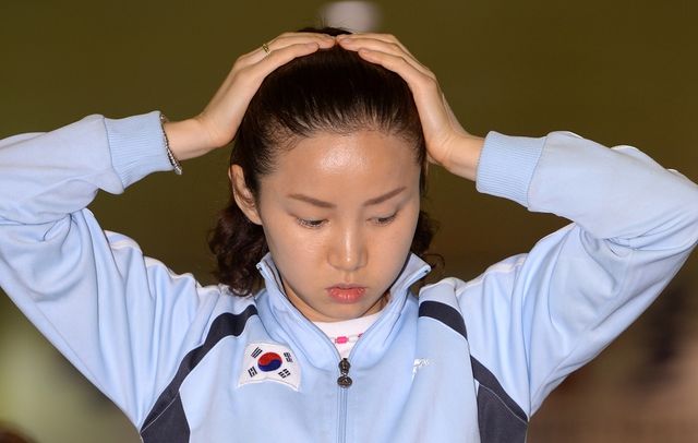 한국 펜싱 여자 플러레 남현희(성남시청)가 2014년 8월 27일 오전 서울 태릉선수촌에서 열린 '2014 인천아시아경기대회 펜싱 대표팀 미디어데이'에서 취재진과 인터뷰 전 머리를 단장하고 있다. / 뉴스1