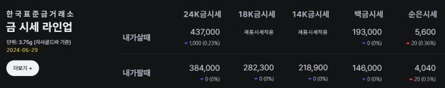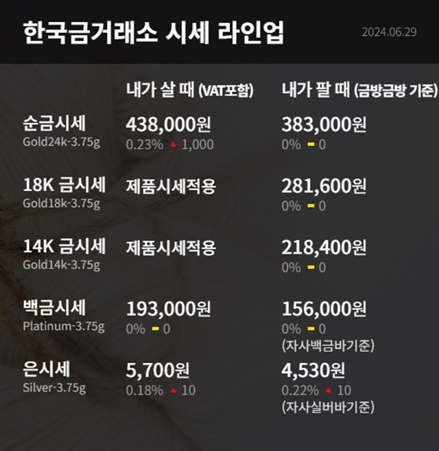 순금(24K) : 매입가 43만 8000원 / 매도가 38만 3000원