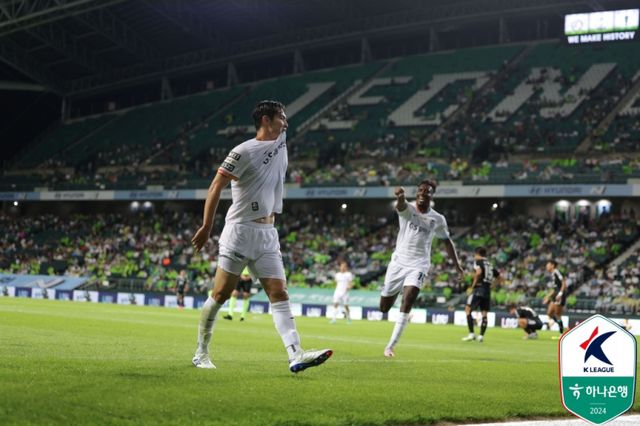 전북은 후반 21분 코너킥 상황에서 정태욱의 헤더를 티아고가 밀어 넣으며 1골 만회했지만, 막바지 강성진-호날두의 연속 득점에 고개를 떨궜다. 호날두는 데뷔 2번째 경기 만에 강성진의 득점을 돕더니, 추가시간에는 데뷔 골 맛을 보며 축제를 완성했다.