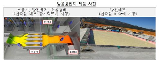 방음·방진재는 아파트 등 건축물에서 소음과 진동 완화, 배관 연결과 내진 설비 등에 사용되는 건설 자재다. 건축물 외부에 설치되는 방음 박스는 물론, 건축물 내부에 설치되는 소음기, 바닥에 놓는 방진매트 등으로 그 영역이 다양하고, 핵심 자재인 만큼 관련 비용은 건축물의 분양 대금에도 영향을 준다.