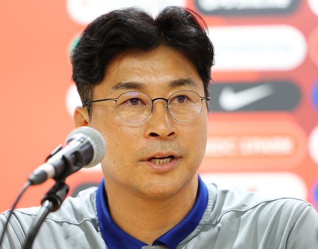 김도훈 축구대표팀 임시감독이 2024년 6월 10일 오후 경기도 고양종합운동장에서 열린 공식 기자회견에서 경기에 임하는 각오를 밝히고 있다. / 연합뉴스