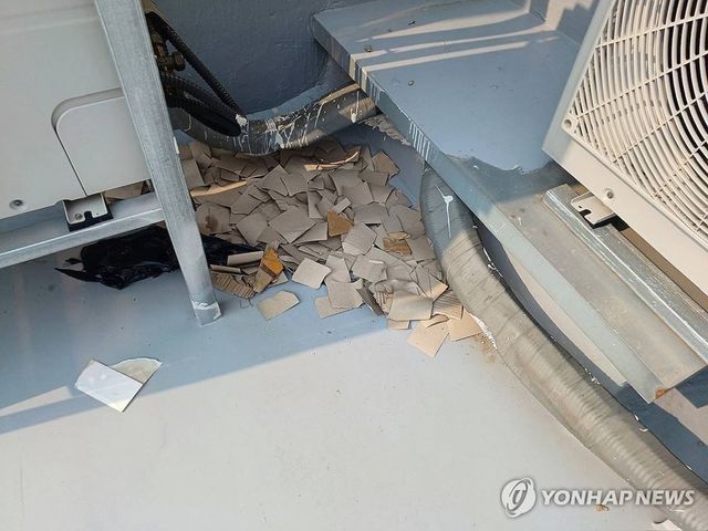 서울 용산구 상가 옥상서 발견된 대남풍선 폐지 / 연합뉴스(서울용산소방서 제공)