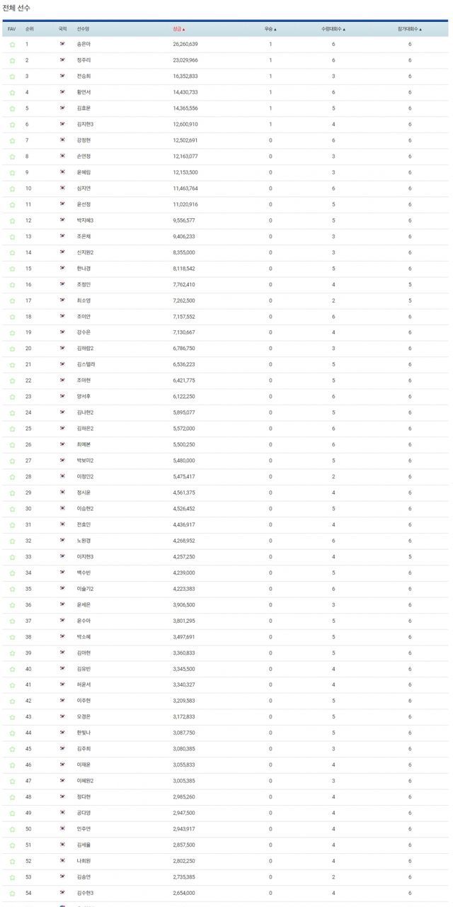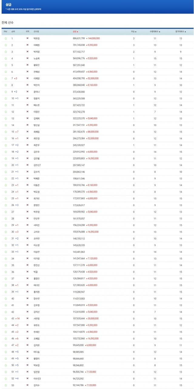■상금순위(맥콜·모나 용평 오픈 with SBS Golf 종료 기준)