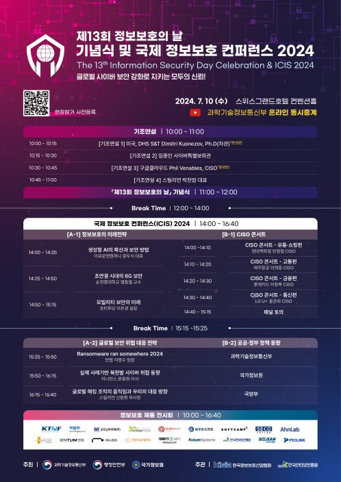 당일 기념식 행사 전에는 미 국토안보부 차관과 구글클라우드 최고정보보호책임자(CISO)를 비롯한 국내외 인사의 기조연설을 통해 글로벌 사이버 보안 협력과 정보보호 신기술 동향 등 내용이 소개될 예정이다.