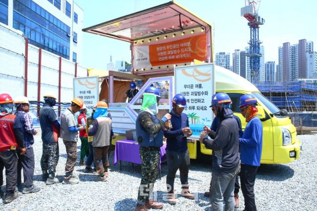 회사는 지난달 28일부터 내달 14일까지 전국 건설현장 근로자들에게 시원한 컵 과일빙수와 간식을 제공하는 프로그램을 실시한다. 이번 푸드트럭 행사는 무더위에도 맡은 업무에 최선을 다하는 근로자들이 휴식을 취하고, 건강한 하루를 보내길 바라는 마음을 담아 마련됐다.