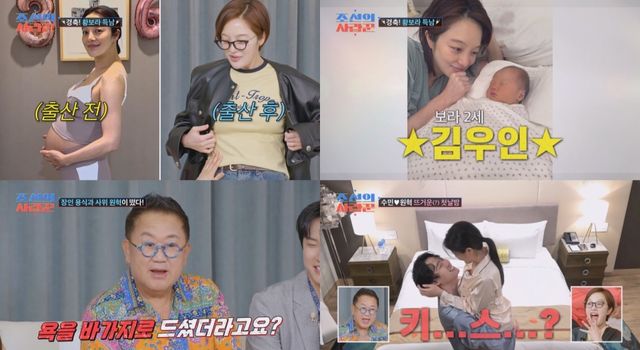 지난 1일 방송된 ‘조선의 사랑꾼’에서는 출산 한 달 만에 돌아온 '오덕맘' 황보라가 근황을 전했다. 황보라는 “시아버님이 너무 좋아하신다. 가족 단톡방이 난리가 났다”며 “내 손주지만 너무 귀티난다고 하셨다”고 '시아버지' 김용건의 팔불출 면모를 전했다. 또, 그는 '시아주버니' 하정우에 대해서도 “처음으로 아이 면회 온 사람이다. 당시에 무서워서 못 안았는데 꿈에 나왔다고 했다”며 단숨에 집안의 '스타'가 된 오덕이를 소개했다. 그리고 황보라는 '오덕이'의 이름을 "남편과 함께 상황극을 하며 3가지 후보군 중 가장 어울릴 법한 이름인 '김우인'으로 정했다”고 밝혔다.