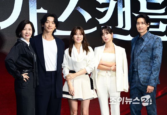 디즈니+의 오리지널 시리즈 '화인가 스캔들'이 2일 오전 서울 여의도 콘래드 서울 호텔에서 제작발표회를 개최했다. 김하늘과 정지훈, 정겨운, 서이숙, 기은세, 박홍균 감독이 참석해 작품을 소개했다.