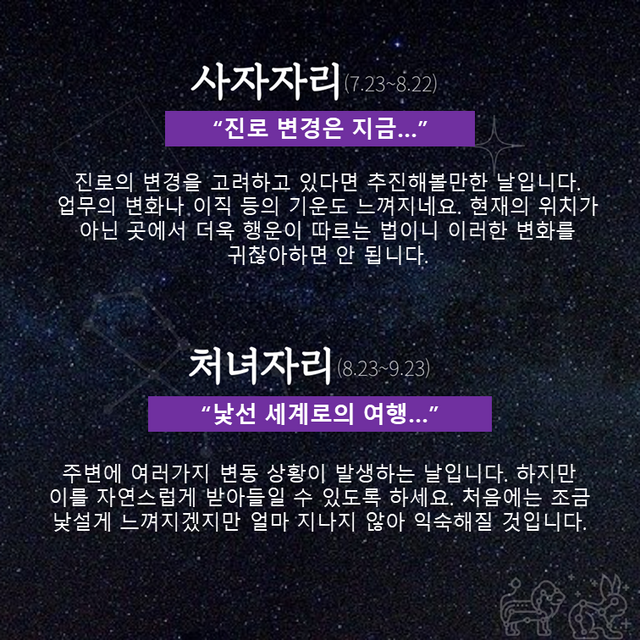 Δ 처녀자리 : 낯선 세계로의 여행…