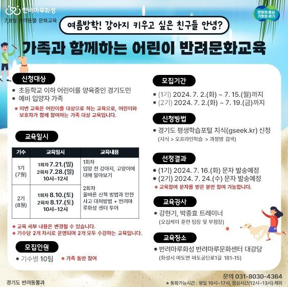 [와이뉴스] 경기도가 여름 방학 기간을 맞아 예비 반려인인 어린이와 고양이 입양자 등을 대상으로 하계 반려문화 교육 프로그램을 운영한다.