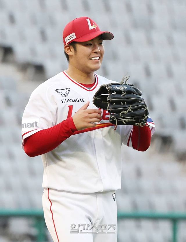 2024 KBO리그 프로야구 SSG랜더스와 kt위즈의 경기가 지난달 27일 오후 인천SSG랜더스필드에서 열렸다. 4회초 무사 1,2루 정준영의 땅볼 타구를 병살로 처리하자 시리카와가 미소를 짓고 있다. 인천=김민규 기자 mgkim1@edaily.co.kr