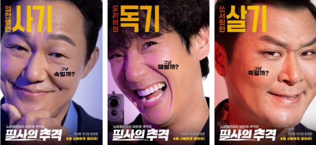 [이데일리 스타in 김보영 기자] 박성웅, 곽시양, 윤경호가 선사할 올여름 최고의 더위 사냥 영화 ‘필사의 추격’이 오는 8월 21일 개봉을 확정 짓고, 3인 티저 캐릭터 포스터를 3일 공개했다.