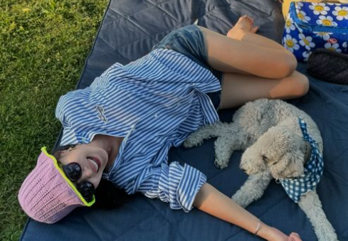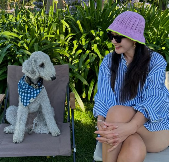 사진 속 엄지원은 반려견 비키와 함께 미국 캘리포니아에서 여유로운 일상을 보내고 있다.
