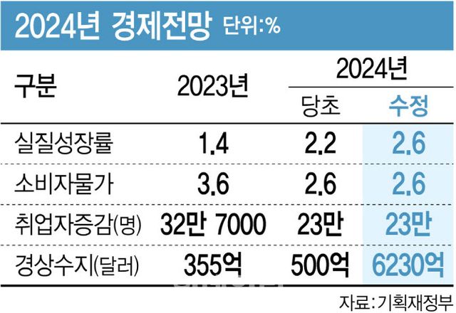 정부는 3일 발표한 ‘2024년 하반기 경제정책방향’을 통해 올해 실질 국내총생산(GDP) 증가율을 2.6%로 전망했다. 올해 1월 ‘2024년 경제정책방향’에서 제시한 전망치(2.2%)보다 0.4%포인트 올린 수치다.