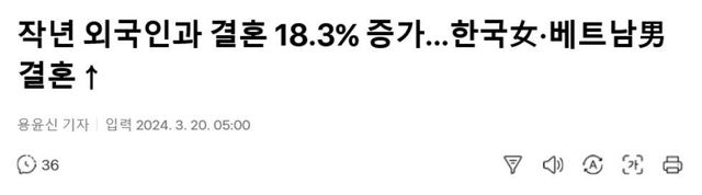 특히, 한국여자+중국남자, 한국 여자+베트남 남자의 결혼이 대폭 늘어났다고 함.