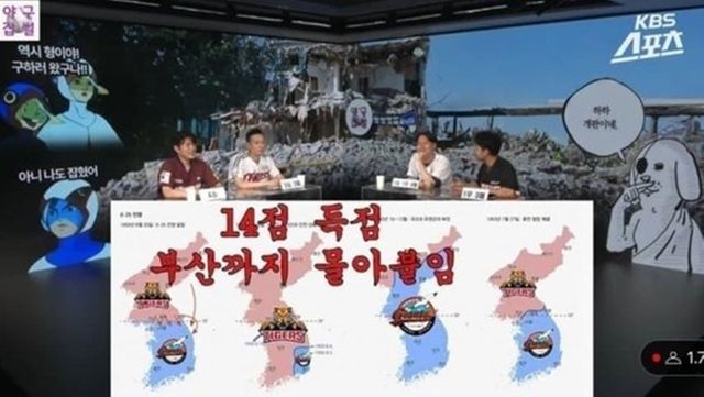 출연진 중 한 명은 해당 경기를 언급하며 "6.25 전쟁을 연상케 하는 전개"라고 말했다. 화면 하단에는 '기아-롯데 화요일 경기 일명 6.25 대첩'이라는 자막이 달렸다.