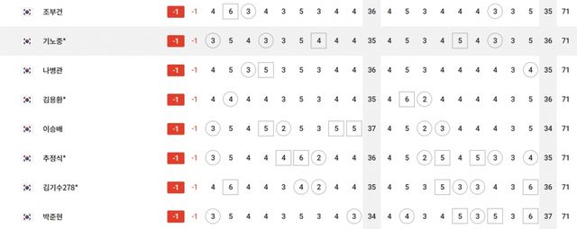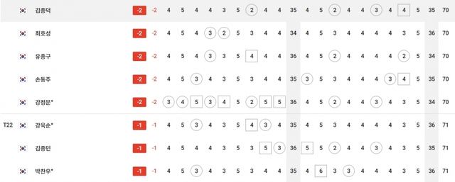 ‘디펜딩 챔피언’ 박노석(57·케이엠제약)늠 이븐파 72타로 공동 35위, 이 대회 최다 우승 기록인 ‘6회 우승’에 도전하는 김종덕(63)은 2언더파 70타로 공동 10위에 머물렀다.