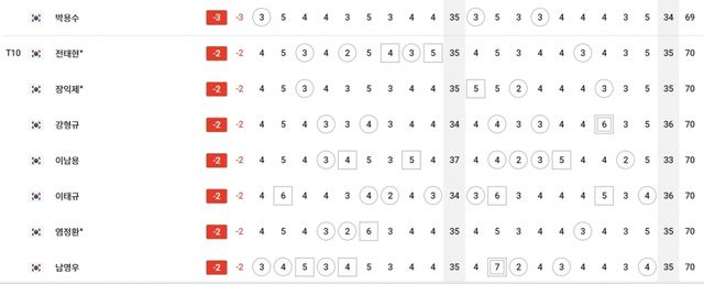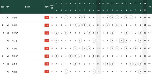 시즌 3승에 도전하는 박성필(53·상무초밥)과 KPGA 챔피언스투어 2승의 박도규(54), 통산 24승(KPGA 투어 20승, 해외 투어 1승, KPGA 챔피언스투어 3승)의 박남신(65)이 나란히 5언더파 67타로 공동 3위 그룹을 형성했다.
