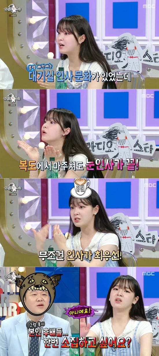 다만, 승희가 언급한 '대기실 인사' 문화가 사라진 부분에 대해서는 반기는 분위기. 누리꾼들은 "대기실 돌면서 인사하는 문화는 굳이 해야 하나 싶었다" "대기실 인사 문화는 사라지는 게 맞다" "대기실 찾아가서 인사하는 문화는 과하다" 등 목소리를 냈다.