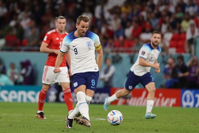2022년 11월 29일 오후(현지 시각) 카타르 알라이얀 아흐메드 빈 알리 스타디움에서 열린 2022 카타르 월드컵 조별리그 B조 3차전 잉글랜드와 웨일스의 경기에서 잉글랜드 해리 케인이 상대문전을 향해 패스하고 있다. / 뉴스1