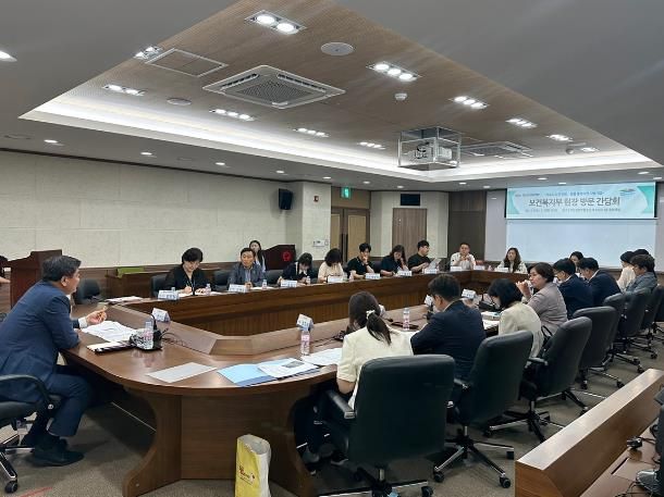 현장 간담회에는 보건복지부 염민섭 노인정책관, 보건복지부 통합돌봄추진단, 국민건강보험공단 연구원 유애정 센터장을 비롯해 현장에서 실무를 담당하는 돌봄 수행 기관 및 협력단체 관계자 등 25명이 참석했다.