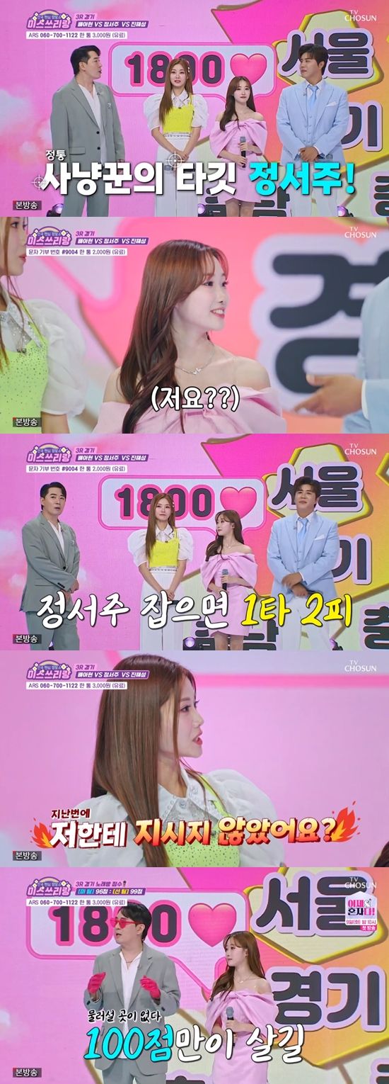 이날 정서주, 배아현, 진해성이 '미스터트롯2'와 '미스트롯2'를 넘나드는 진선미 대첩을 펼쳤다.