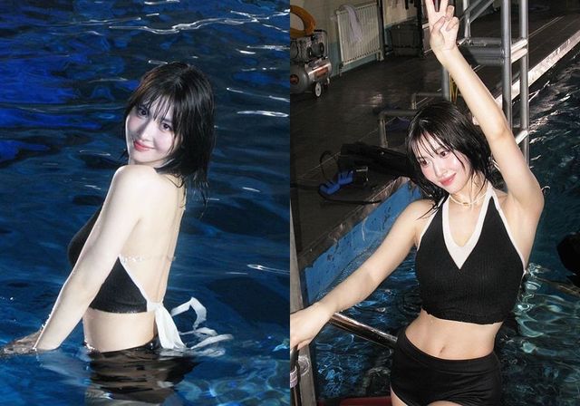 공개된 사진 속 모모는 검정 홀터넥 비키니를 착용해 잘록한 허리라인과 군살 없는 몸매를 뽐내 시선을 사로잡았다. 특히 뒤태를 과감하게 드러내 반전 매력을 선사했다.