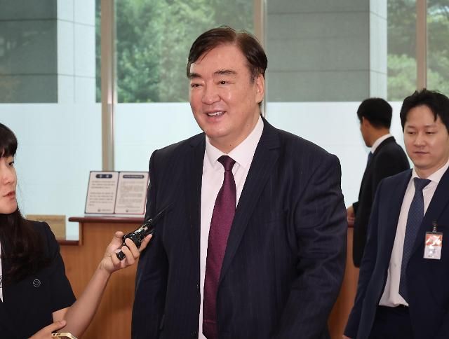 4日,中国驻韩国大使邢海明在韩国外交部大楼会见韩国外长赵兑烈。【图片提供 韩联社】